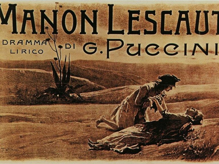 Història: Puccini va llegir la novel·la de Prévost a principis de 1890 i es va decidir de seguida a posar-li música. Va treballar en ella durant dos anys. part en Vacallo (un llogaret suís prop de Chiasso), part a Milà, a Lucca, i finalment en Torre del Llac.